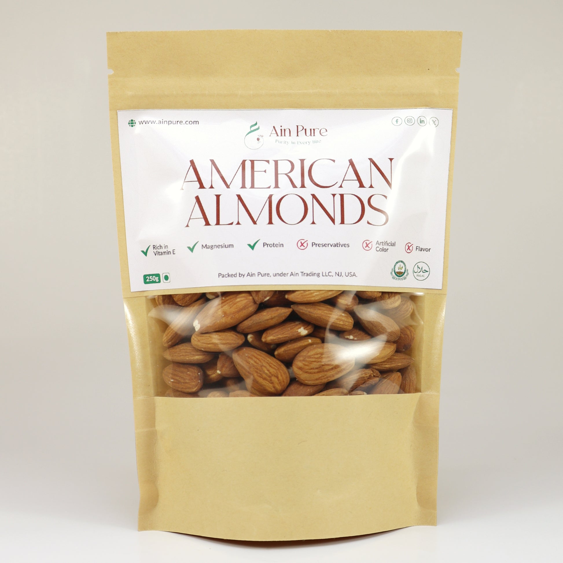 A nutrient-dense superfood, Ain Pure American Almonds are rich in vitamin E, protein, and healthy fats. They boost brain function, improve skin health, and provide sustained energy.