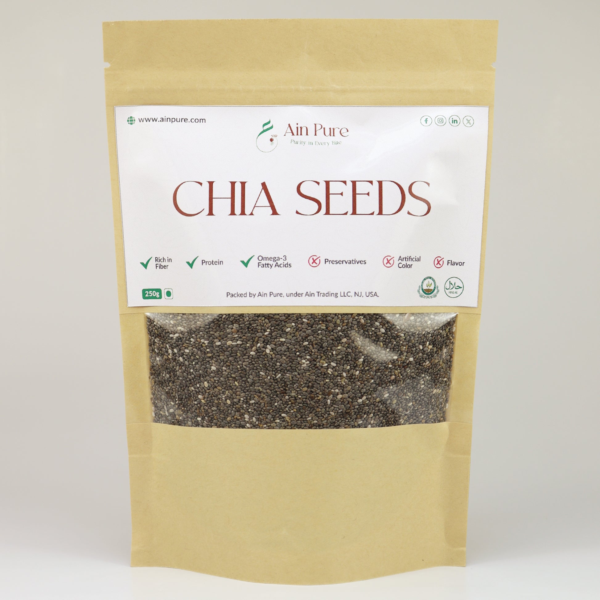 A superfood rich in omega-3, fiber, and protein, Ain Pure Chia Seeds help with digestion, weight management, and energy levels. Their ability to absorb water makes them perfect for puddings, smoothies, and baking.