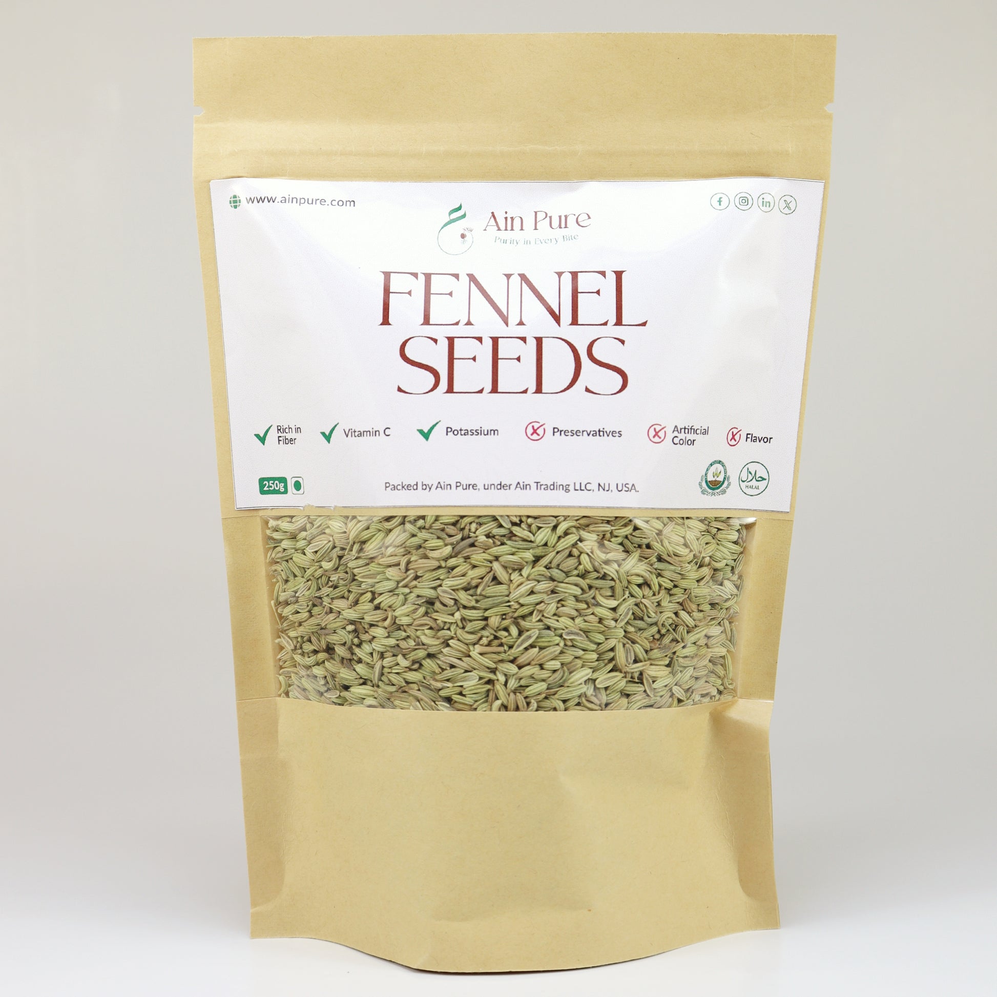 Sweet and aromatic, Ain Pure Fennel Seeds aid digestion, freshen breath, and support overall gut health. Perfect for herbal teas or chewing after meals.