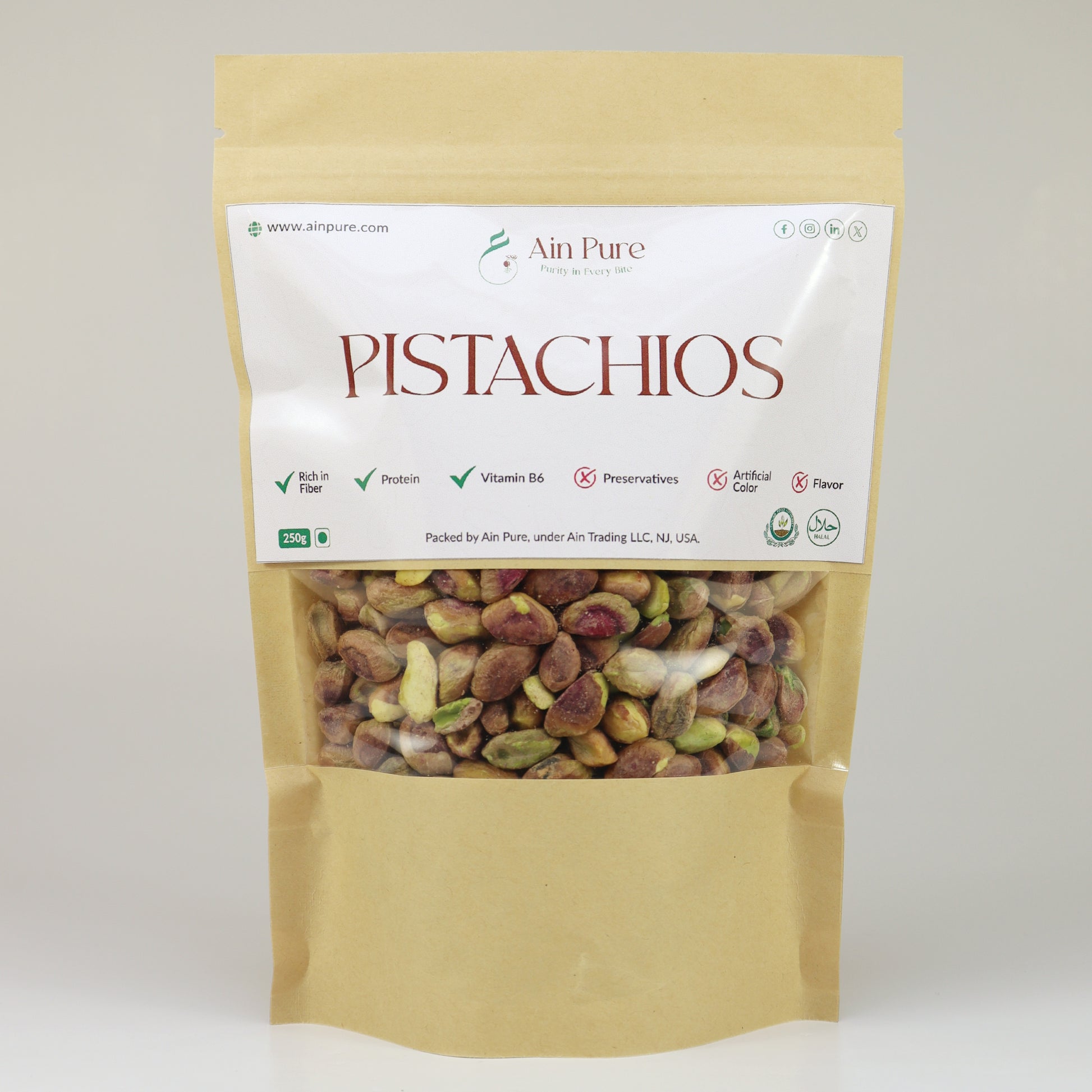 A high-protein, fiber-rich nut, Ain Pure Pistachios support digestion, weight management, and heart health. Enjoy them roasted or raw for a nutritious snack.